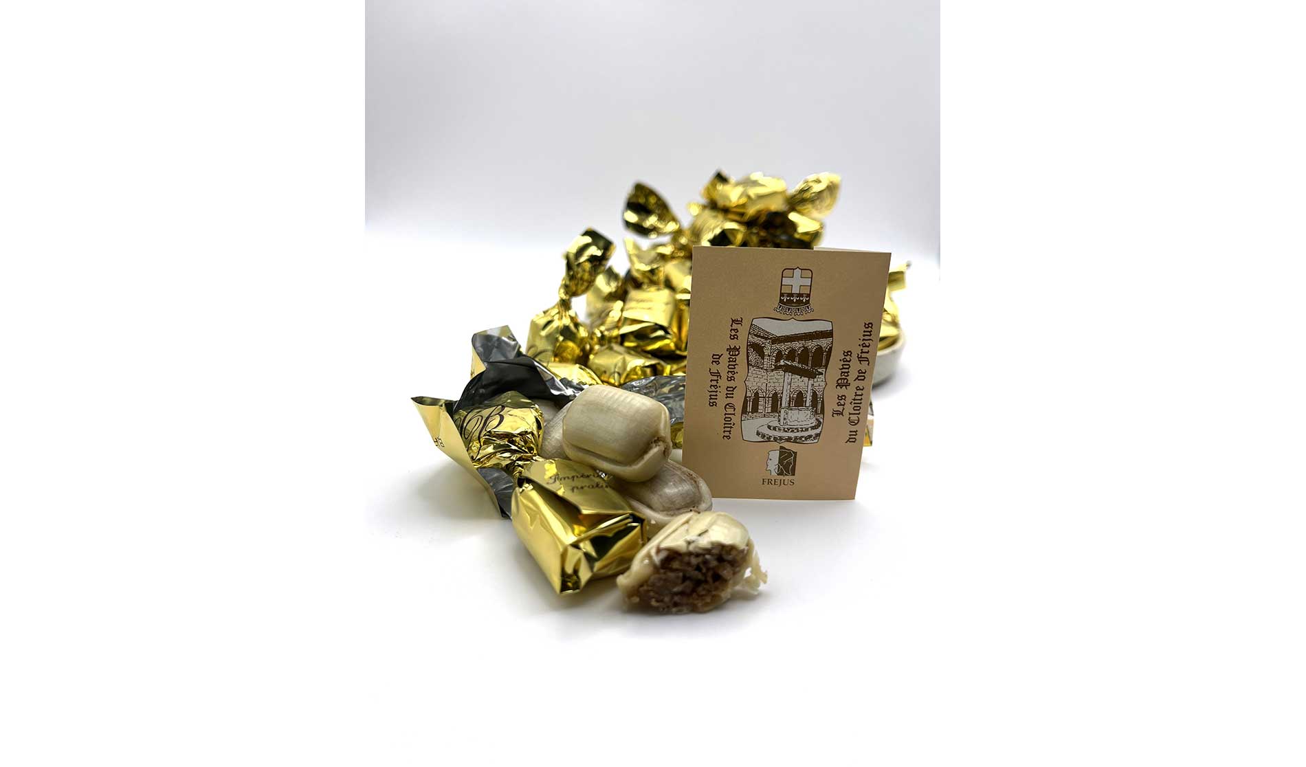 Tendres guimauves, pâtes de fruits tout juste sucrées, fruits confits au sirop de sucre et finement glacés, calissons aux amandes et au melon confit… Sans oublier les «Pavés du Cloitre de fréjus», ce bonbon enrobé d’une coque caramélisée est fourré d’un feuilleté aux noisettes, notre délice local !